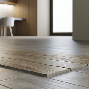 Керамогранит под дерево — спасение для тех, кто любит тёплый характер доски, но не готов мириться с капризами настоящей древесины. В коридоре с уличной грязью, на кухне с брызгами и в ванной с паром он держится уверенно и выглядит не хуже паркета.